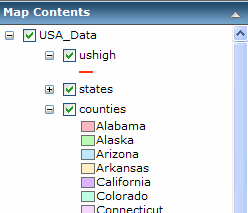 If the mapping application allows it, you can view the list of the contents of the map, turn on and off layers, and examine the symbols for layers.